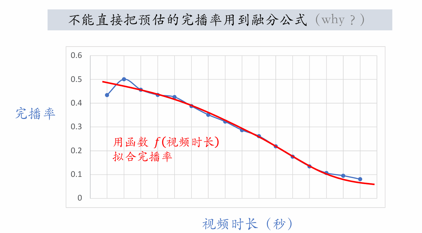 视频越长完播率越低,直接用预估完播率会偏向推荐短视频而非长视频。因此需要进行优化,使短视频和长视频一样公平。